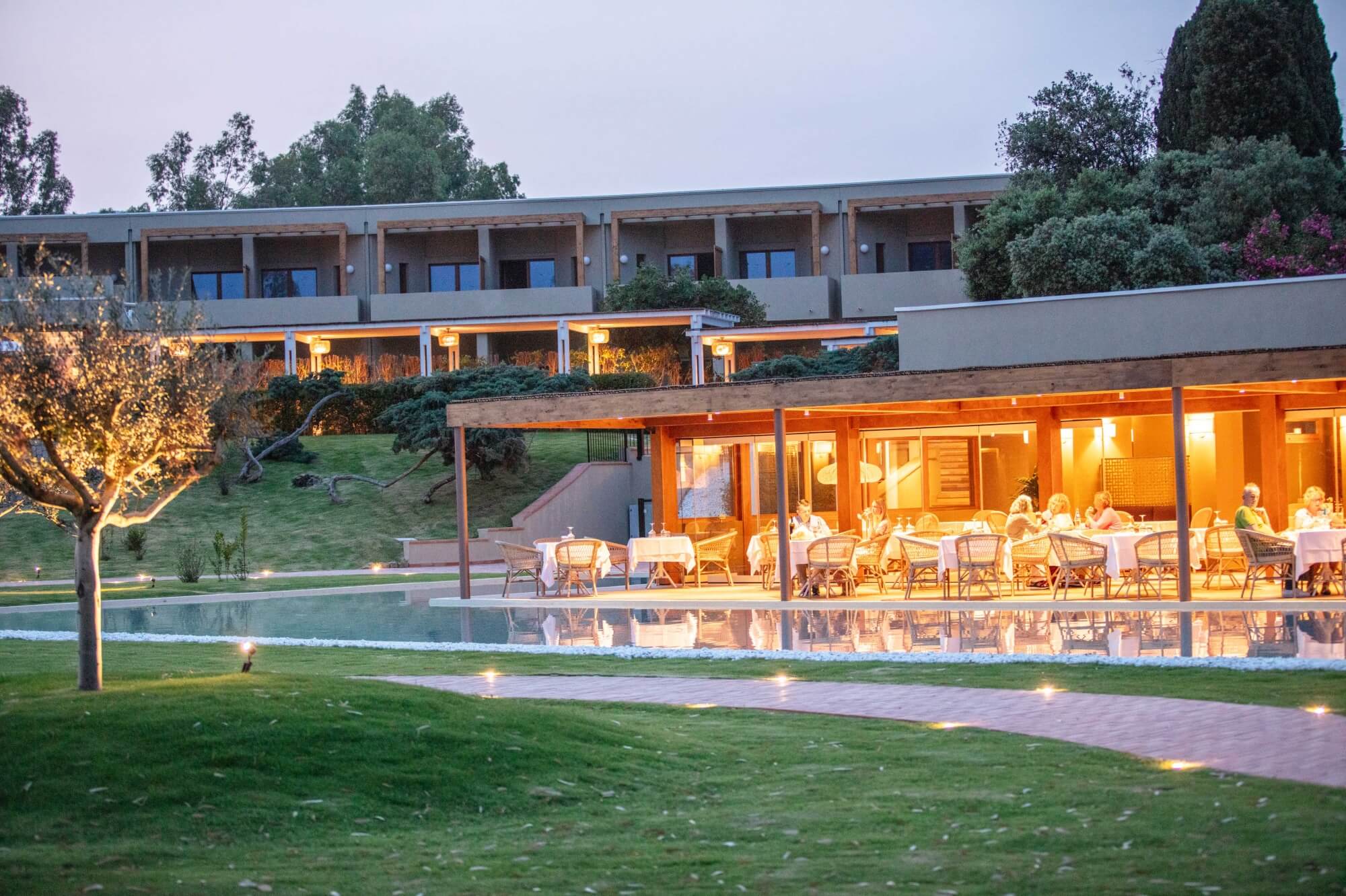 Dopo il campo, ti aspettano piscina, ristorante e camere immerse nel verde.